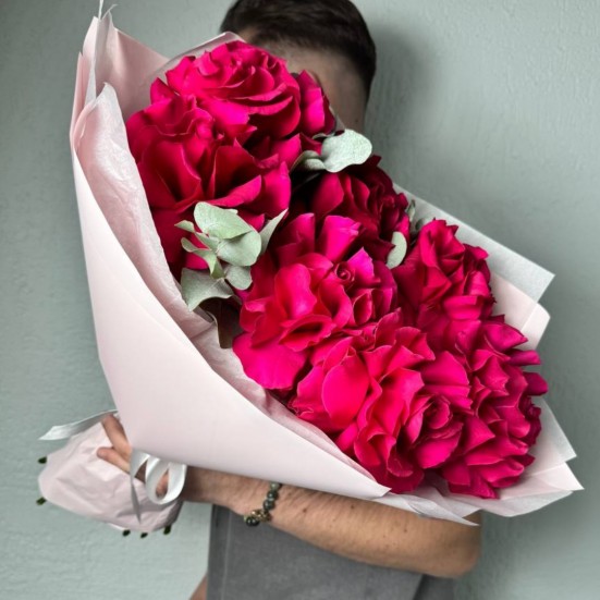 Букет из семи малиновых роз в Химках